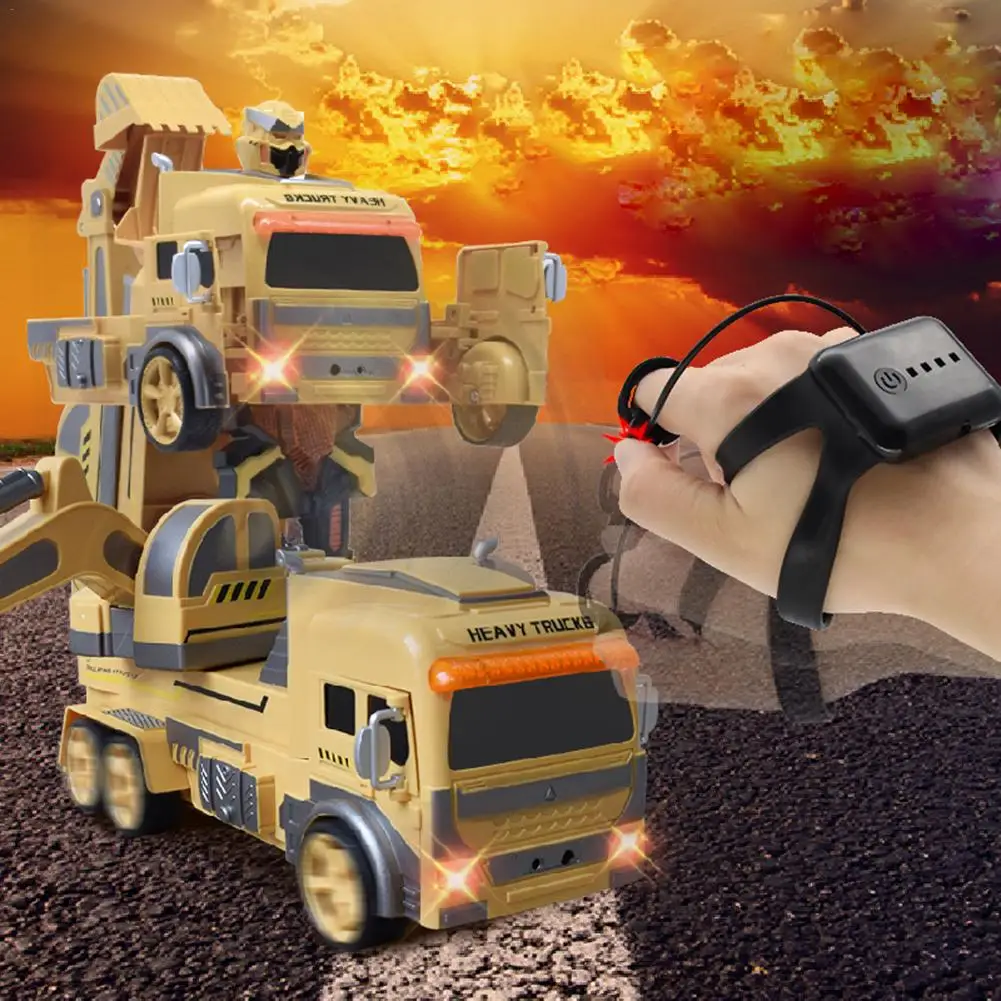 BEST QUALITY RC Engineering Vehicle 1:12 One Key Deformation Dump Truck Watch Gravity Gesture Sensing Trunk RC C
